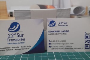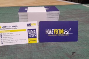 Las tarjetas que confeccionamos son en Papel Couche de 300grs, impresas en Láser  a 1200 dpi, en impresora Canon c750, con la cual garantizamos una excelente calidad en impresión, además si ud lo requiere ofrecemos un laminado, el cual es una película de plástico que cubre a la tarjeta generando mayor durabilidad y resistencia.
