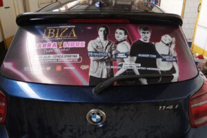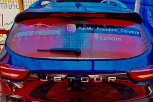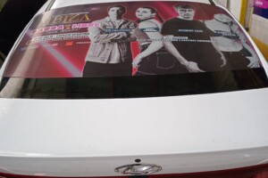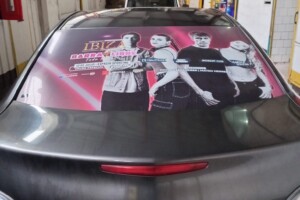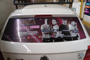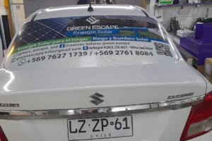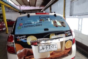 Este servicio contempla el servicio más simple Rotular la Luneta del vehículo con adhesivo microperforado (este material permite ver hacia afuera, pero no al revés)