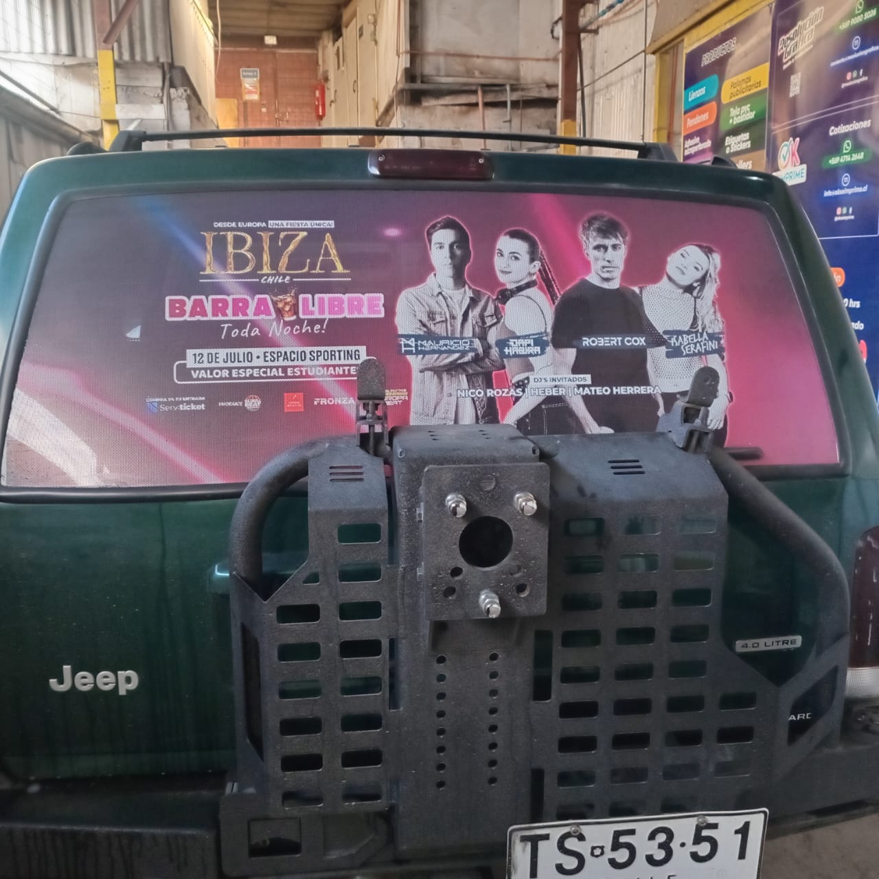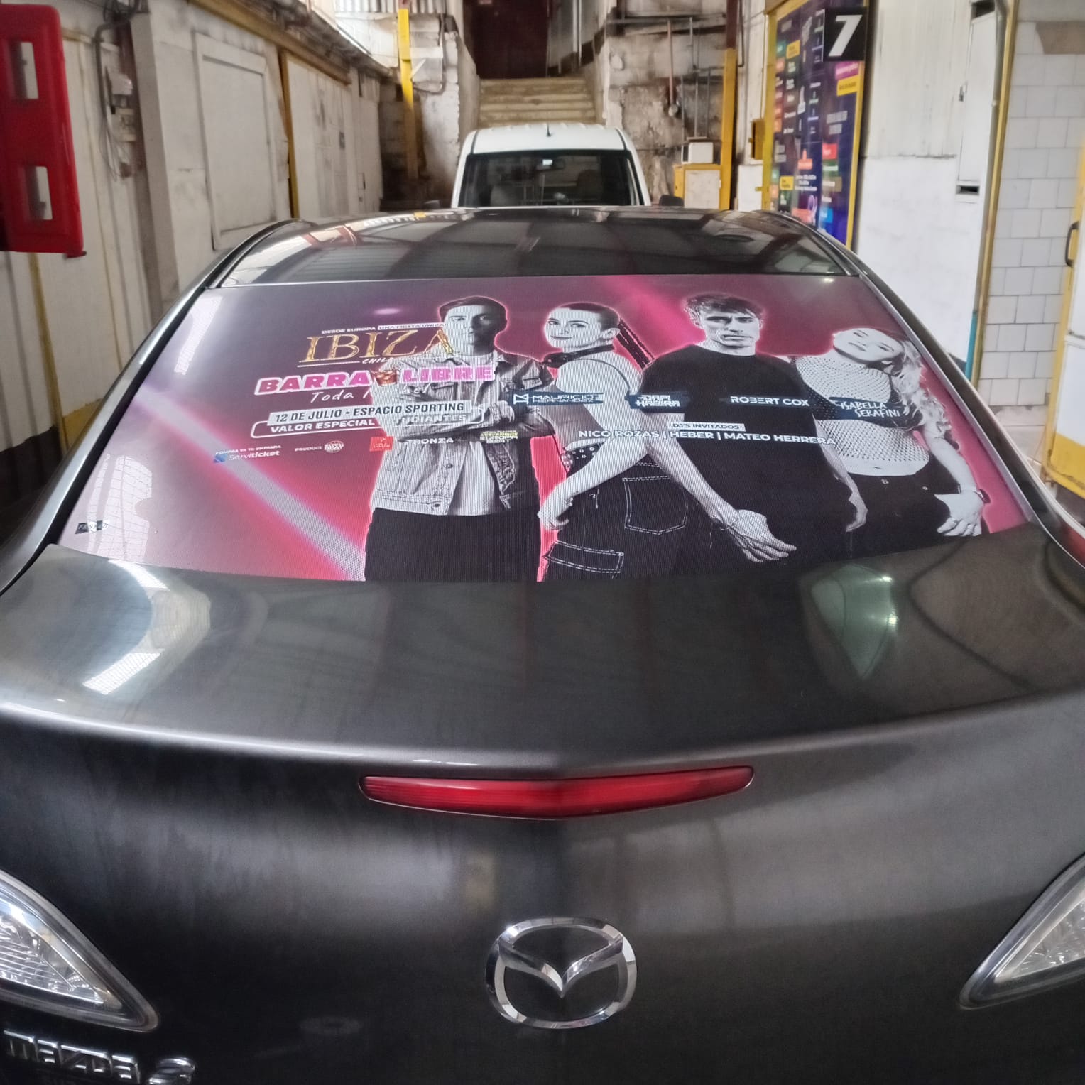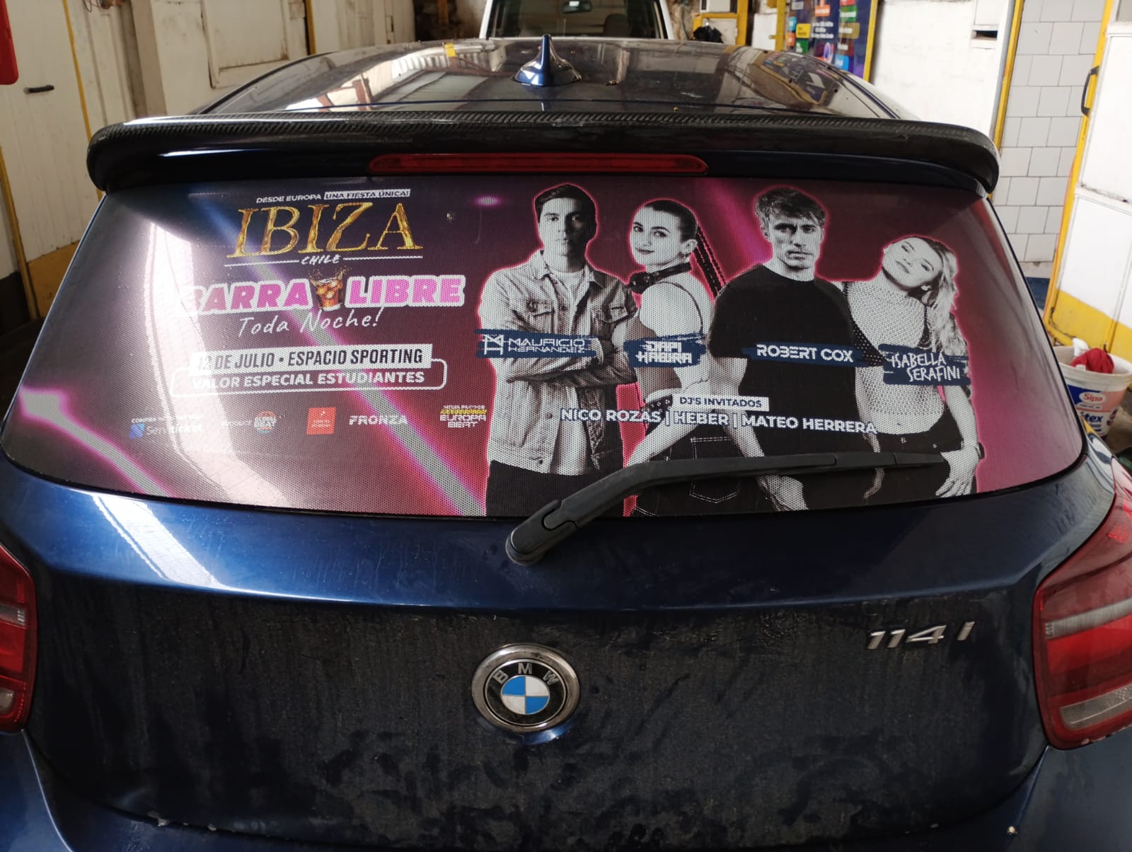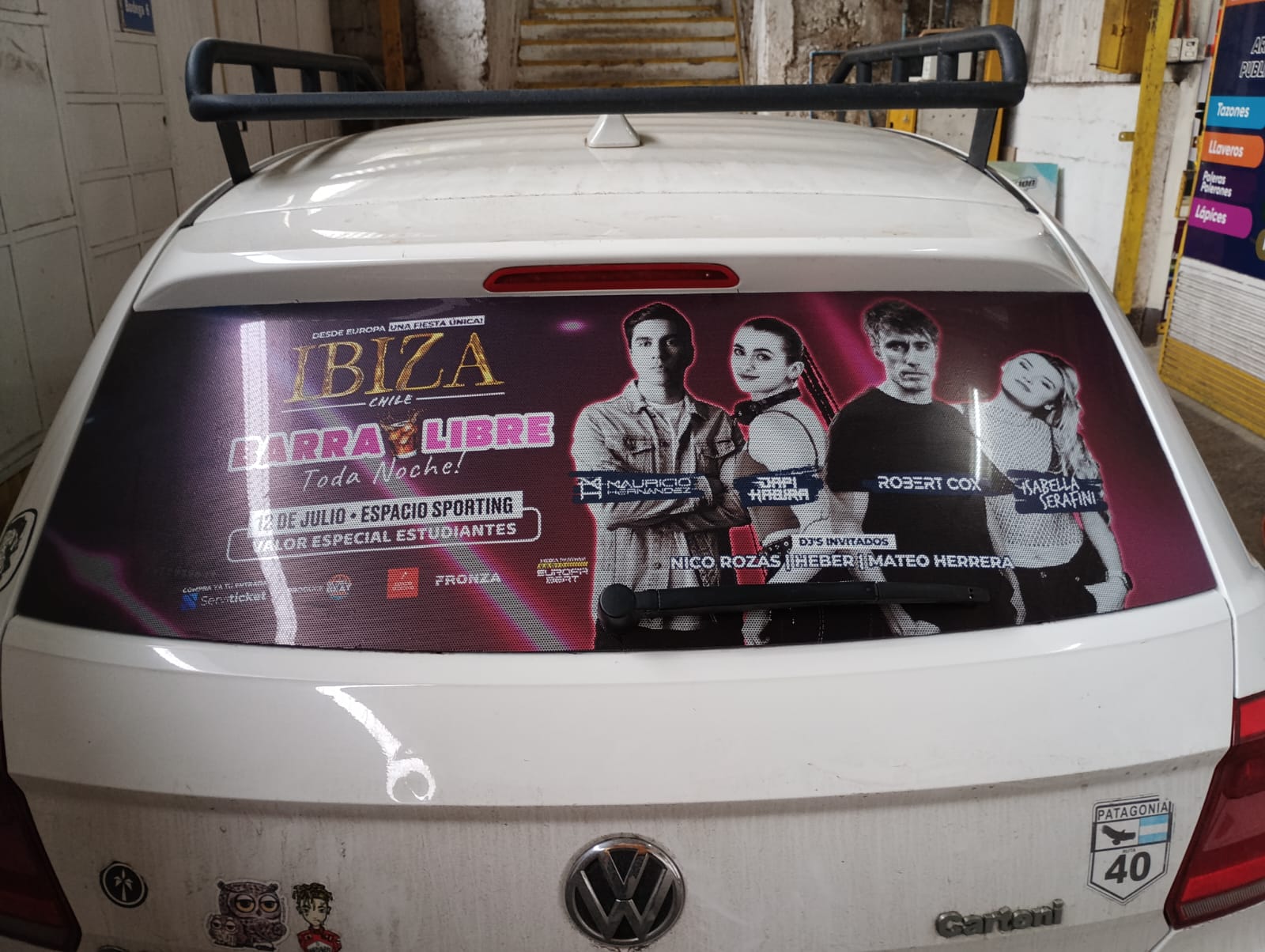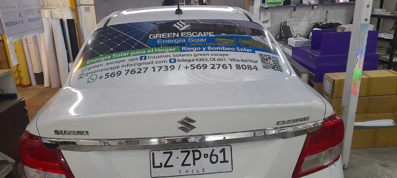 Este servicio contempla el servicio más simple Rotular la Luneta del vehículo con adhesivo microperforado (este material permite ver hacia afuera, pero no al revés)